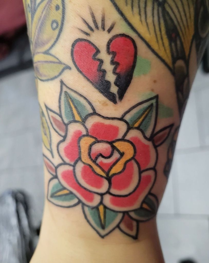 Yesterday we saw each other for the first time since the night I got angry and left. It was great. Just being able to hug him again was wonderful. I love his hugs. That was another thing I had missed terribly. We went and got tattoos together, something we have done a few times before. I got a rose and a broken heart. He got a skull with some barbed wire. They turned out great!